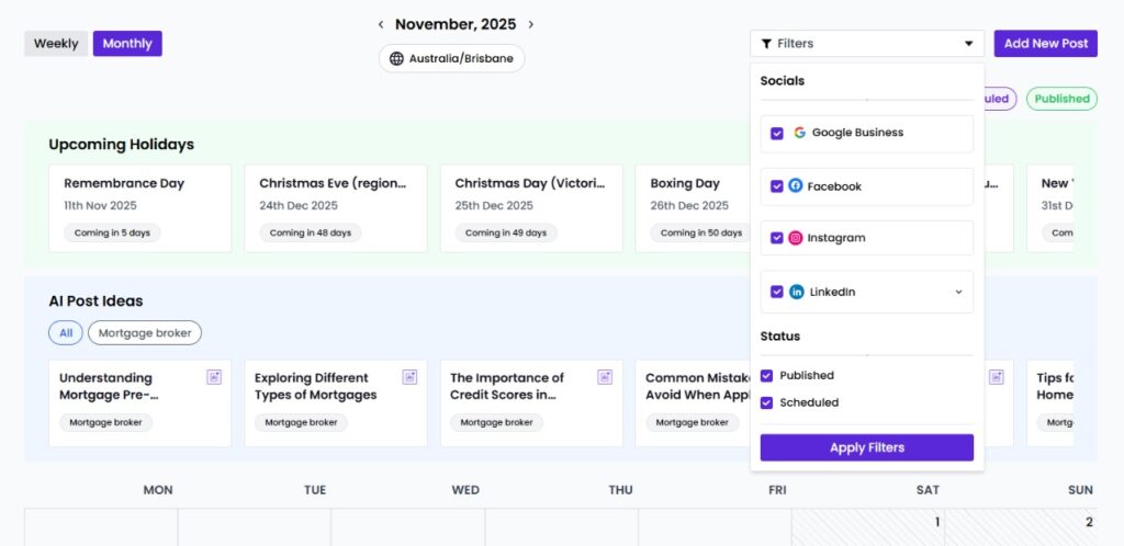 ✅ Schedule posts across Facebook, Instagram, X, and LinkedIn